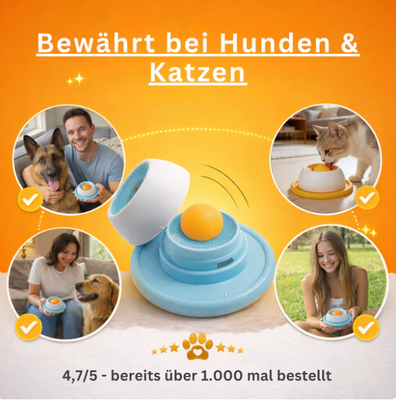 Das intensive Schlecken setzt Glückshormone frei, die deinen Hund in wenigen Minuten beruhigen. Anders als gewöhnliche Spielzeuge fordert die rotierende Bewegung deinen Hund geistig heraus, ohne ihn zu frustrieren.